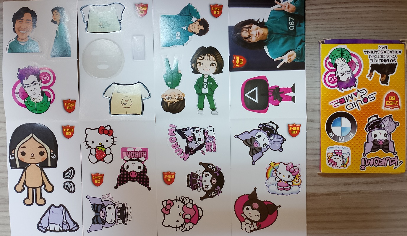 Paketteki tüm kartlar stickerdir.
